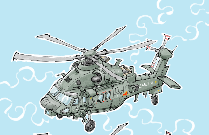 手繪漫畫看閱兵空中梯…