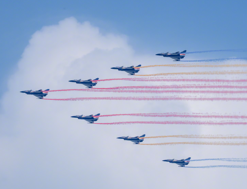 7架殲10表演機劃出14…